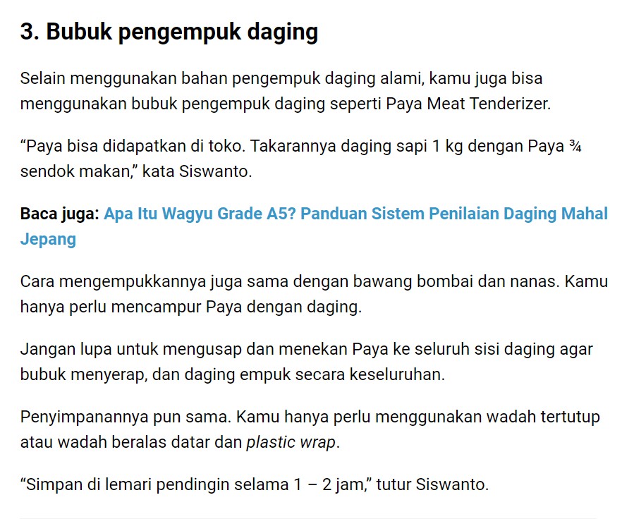 Untuk kamu2 yang punya bisnis makanan dan menghidangkan daging, sebaiknya untuk mempertahankan reputasi bisnis kamu, dagingnya harus empuk. ⁠