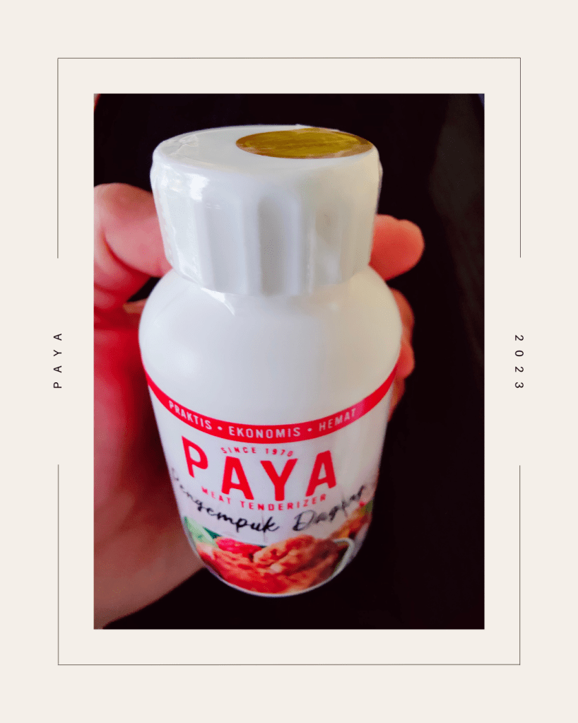 Pengempuk daging PAYA dibuat tanpa bahan pengawet, MSG, dan pewarna makanan.